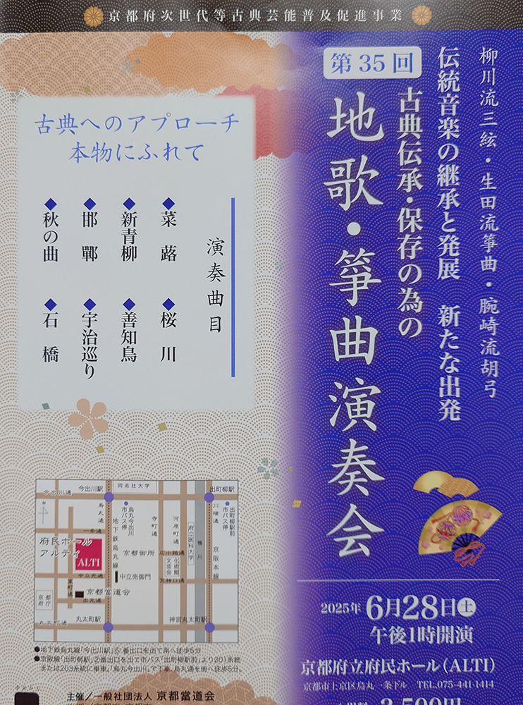 | 6月7日 | (日) | 第36回 古典伝承保存の為の地歌箏曲演奏会 京都府民ホール アルティ |