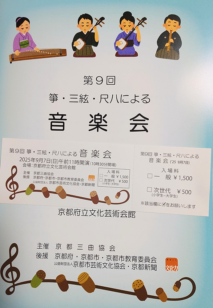 | 9月13日 | (日) | 第10回 箏・三絃・尺八による音楽会 京都府立文化芸術会館 |