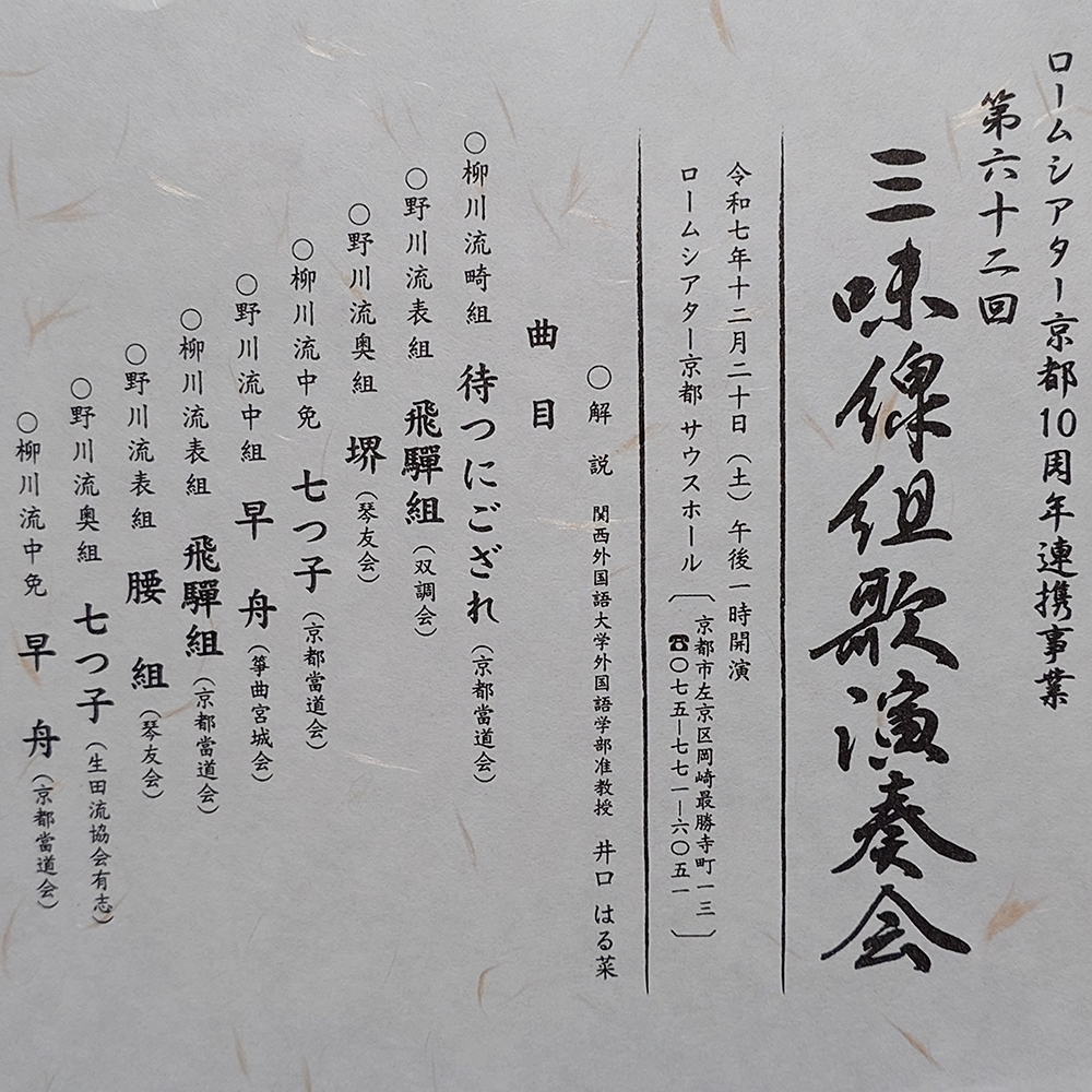 | 1月10日 | (土) | ロームシアター京都 リニューアル10周年記念 “萬歳”演奏 メインホール |